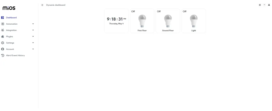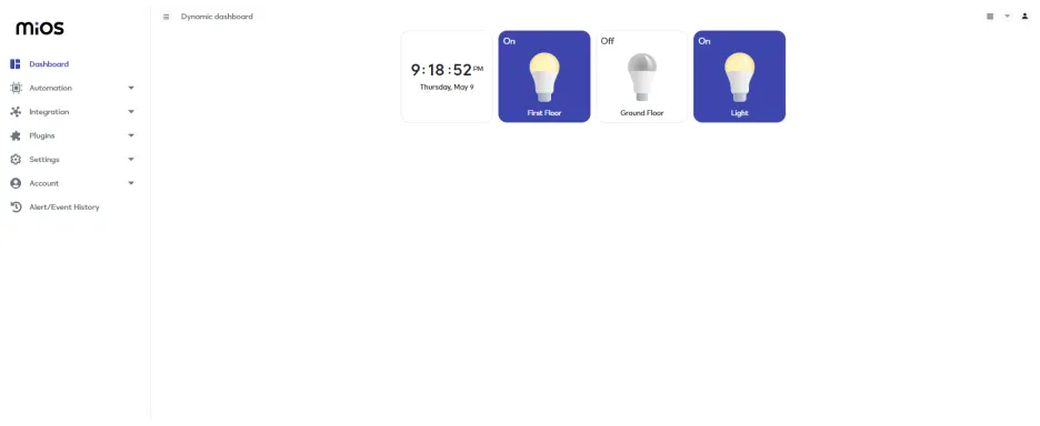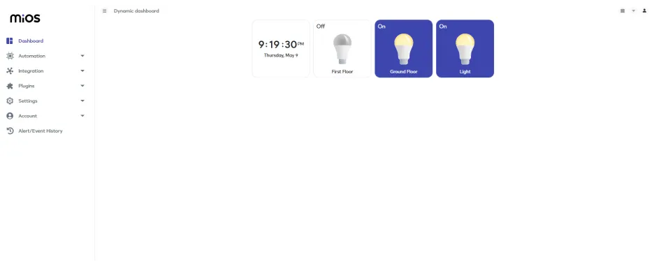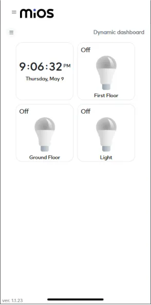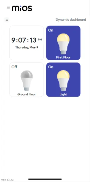 - After opening the MiOS mobile app dashboard, We can see that when the Light is operated from the First Floor Button, The Light turns on because of the rule we have set in the meshbot.