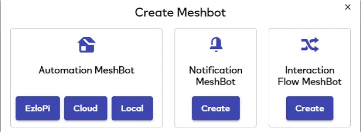 - After clicking on Create new MeshBot you will see new options, now under Automation MeshBot click on Local.