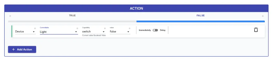 - In the trigger tab you can set the TRIGGER for your device and in the ACTION tab you can set the action to be performed based on the trigger which you have created.