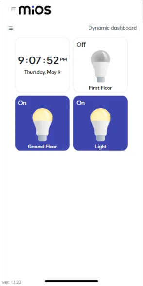 - After opening the MiOS mobile app dashboard, you will be able to see the tile of your connected device. The state of the LED Light is controlled by just touching the tile buttons as shown on the app.
