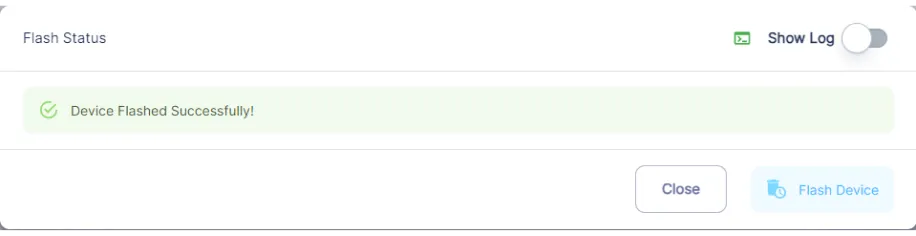 - After some time, a popup will appear saying Device Flashed Successfully! This means that your device has been set up successfully.